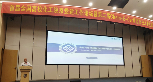 2019年5月11-12日,首届全国高校化工院系党建工作论坛暨第二届Chem-E-Car联盟高校大学生思想政治教育工作论坛在南京工业大学江浦校区举办。我们作为此次受邀的两所首批“全国党建工作示范高校”和两所首批“全国党建工作标杆院系”做重点汇报。