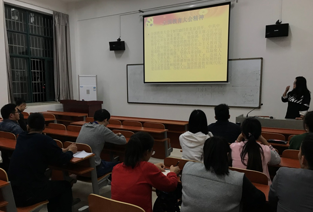 郝佳瑜首先向大家传达了全国教育大会的主要精神。教育是国之大计、党之大计,是民族振兴、社会进步的重要基石,是功在当代、利在千秋的德政工程,对提高人民综合素质、促进人的全面发展、增强中华民族创新创造活力、实现中华民族伟大复兴具有决定性意义!