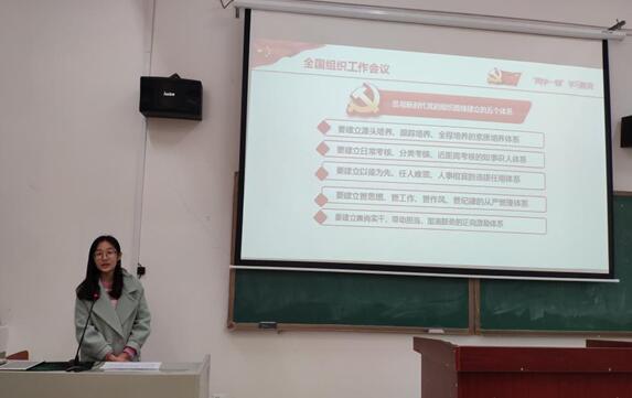 活动第一部分是理论知识学习,内容包括“全国组织工作会议”“全国宣传思想工作会议”“全国教育大会精神”和“新修订的《中国共产党纪律处分条例》”。学习过程打破以往的“一人讲,其余人听”形式,采取让全体同志都参与其中新形式,通过党员同志们自己对“新时代党的组织路线”“关于人才建设的两支队伍”和“对优秀年轻干部的要求”等主题内容的朗读和讲解,并结合观看相关视频,使得大家对所学内容印象更加深刻。