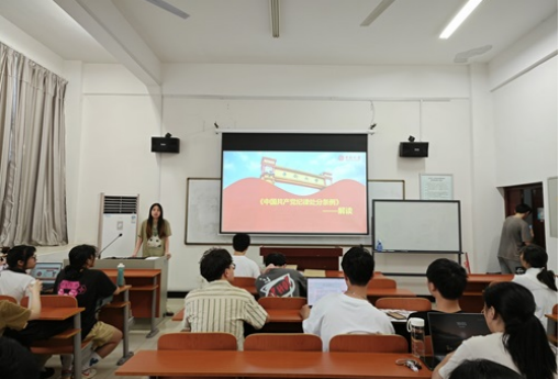 会议第一项,谭澳利同志进行以“学《条例》明纪律,做合格大学生党员”为主题的《中国共产党纪律处分条例》领学。党支部书记谭澳利同志带领全体党员同志从把握党的纪律建设的政治属性和时代特性、加强全方位管理和经常性监督、《条例》如何贯彻落实等方面集中解读《中国共产党纪律处分条例》。谭澳利同志表示在日常的生活与工作中,各位党员同志要以高度的政治自觉积极学习《中国共产党纪律处分条例》,切实抓好条例贯彻执行,以严明的纪律推进党的自我革命,为经济社会高质量发展保驾护航。