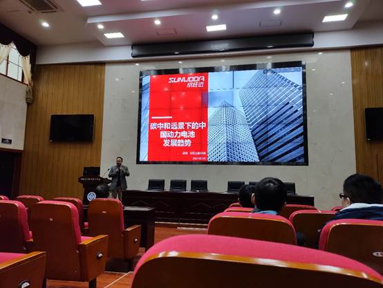 报告接近尾声时,梁锐副总裁与在场的的学生和老师进行了多次互动,对学生提出的问题进行了细致的解答并为在座的老师就动力电池相关问题的细节之处再一次做出了解释。同时梁锐副总裁也为我们介绍了他们公司的一些研究方向和研究成果。最后,此次讲座在师生们的阵阵掌声中落下了帷幕。