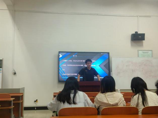 最后,班会进入安全教育环节,班长张涵博通过播放安全警示视频、列举典型案例,围绕宿舍用电安全、外出交通安全、网络诈骗防范等主要内容进行讲解,借助案例分析提醒同学们自觉遵守安全规定,既要保障个人安全,也要共同维护班级安全防线。