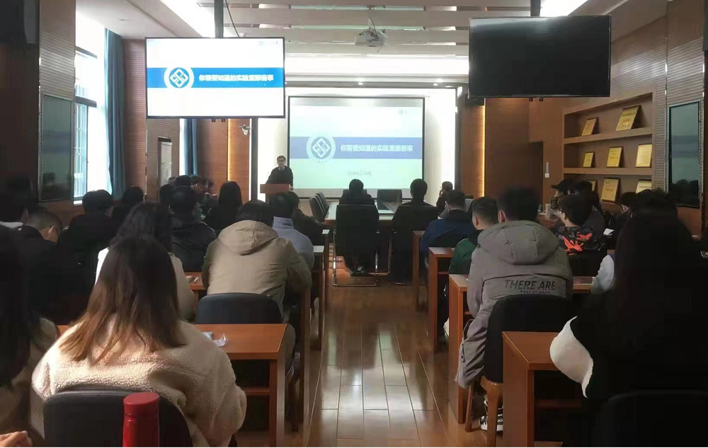 然后,侯红帅老师以“各个实验室潜在隐患”为切入点,指明了实验室规范操作、实验室安全的重要性,详细介绍了实验室常见易燃易爆、有毒有害危化品种类及使用、保存规范,希望大家能牢记实验室安全细则,警钟长鸣。