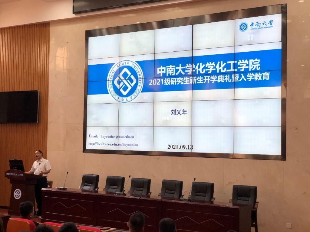 接着,刘又年院长向大家介绍了学院的情况,并从什么是研究生、为什么要读研、读研的几点建议三方面对2021级新生进行了入学教育。他鼓励同学们努力从知识、能力和素养等方面提升自我,成为一个纯粹的、品格高尚的、有益于社会的人。最后,由学生代表张馨心带领2021级研究生新生进行科研诚信和学术道德教育宣誓。