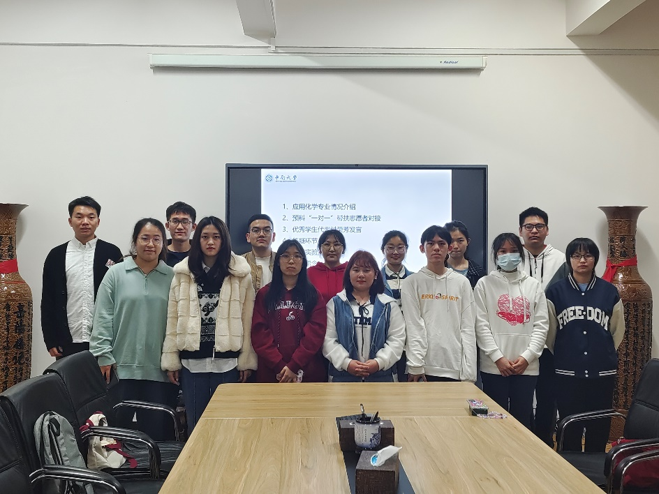会议开始,化工院学工办柏景涛介绍应用化学专业情况,讲述本专业的发展进程、发展现状、师资队伍和优秀校友,同时对几位预科生同学提出了三点希望:一是培养良好学习习惯,打下扎实专业基础;二是涵养良好品德,向优秀校友学习;三是积极参加学生工作与社会实践活动,服务集体、奉献社会。