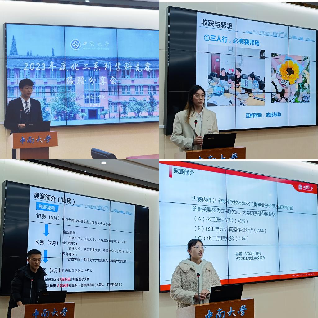 在食品专业工程实践训练综合能力竞赛的分享中,梁琦敏首先简要介绍了这项竞赛,并从保研加分、竞赛内容详细阐明了参加这项竞赛的收获;随后杨林堃则是从竞赛的虚拟仿真实验、实际操作细节、赛前仪器练习和团队分工演练四个方面讲述了在准备竞赛中遇到的问题和解决办法,为有参赛想法的同学指点迷津。最后梁琦敏补充该如何平衡竞赛与实习,在分享收获和心得的同时指出应该具有互相帮助,彼此鼓励的可贵精神。