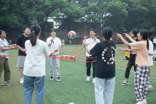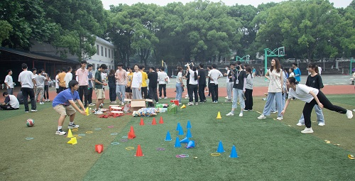此次活动在胡老师对参赛的同学们的激励发言中拉开帷幕。运动会项目包括“两人三足”、“骑马相扑”、“条件接力”、“巨型排球”、“精准投球”以及“同心鼓”,在项目中取得名次可以获得相应数量的盖章,盖章可以兑换抽奖及套圈次数。在“条件接力”项目中,“来去自如”、“健步如飞”是参赛同学最真实的写照;蒙眼扔球,双人托举,以此考验团队配合的默契,这正是“精准投球”和“骑马相扑”项目向同学们所传达的本意;“一二!一二!”的齐声呐喊响彻在“两人三足”项目的现场;排球场上,同学们齐心协力将排球打过球网,正是“巨型排球”项目的精神所在……