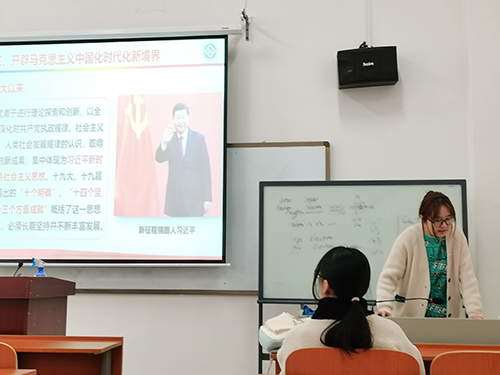 接下来,文体委员王佳敏介绍了“开辟马克思主义中国化时代化新境界”和“以中国式现代化全面推进中华民族伟大复兴”等观点,并为同学们播放了中国共产党国际形象网宣片。