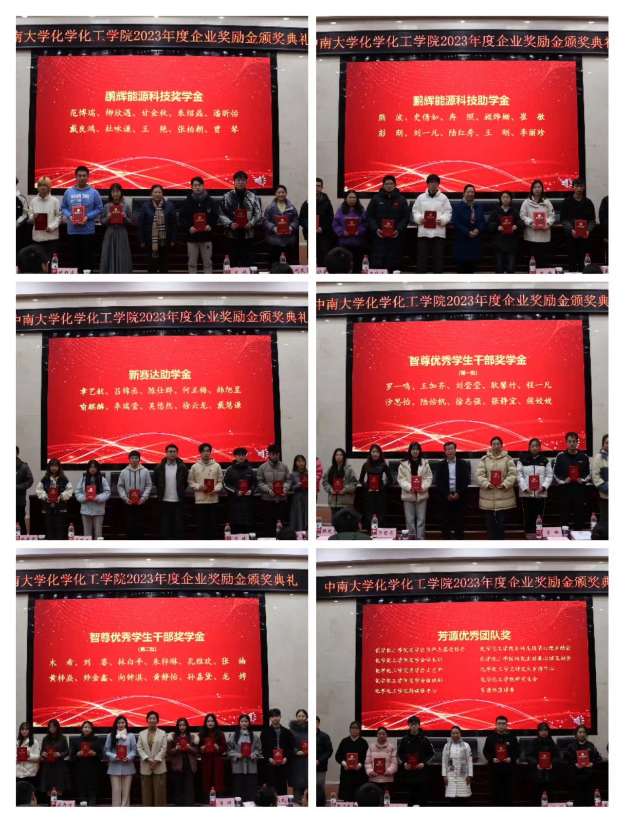 12月27日下午,伟德bv1946官网首页2023年度企业奖励金颁奖典礼在化工楼133隆重举行。惠州市新赛达实业有限公司董事长助理陈哲凌、伟德betvlctor1946教育基金会副秘书长曾琳、学院党委副书记滕晓雯、关工委副主任蒋利武、关工委委员罗一鸣、刘常青、学工办全体辅导员、获奖个人及团队代表出席此次颁奖典礼。颁奖典礼由学院辅导员胡雨琪主持。