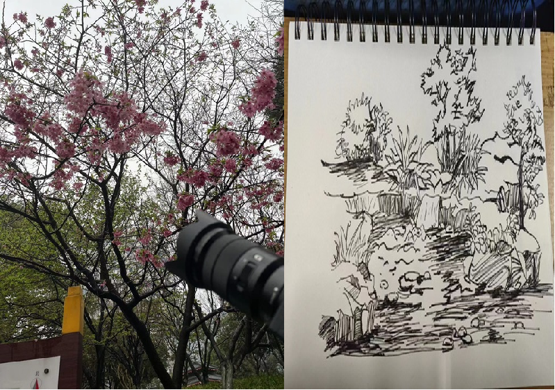 紧接着,各支部成员分头行动。在感受长沙初春的美好风景的同时,深入了解我们身边的生态环境;在领略生态之美的同时,时刻牢记践行保护生态的理念。采风拍照写生,树叶拓印,撰写张贴环境保护标语……建设和谐生态,同学们行在路上,记在心间。