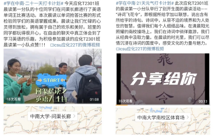 为培养学生持续养成良好的生活作息和学习习惯,推进“学在中南”建设,伟德bv1946官网首页应化T2301班响应学校号召开展“学在中南·21天晨读元气打卡活动”。在2024年3月25日至4月10日之间,应化T2301班晨读第一小分队开展了丰富多彩的晨读活动,既有趣味比赛让同学们在学习知识的同时获得快乐,又有分享与合作让同学们增进彼此了解。