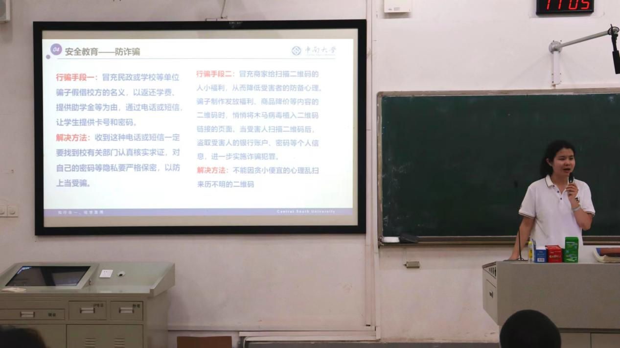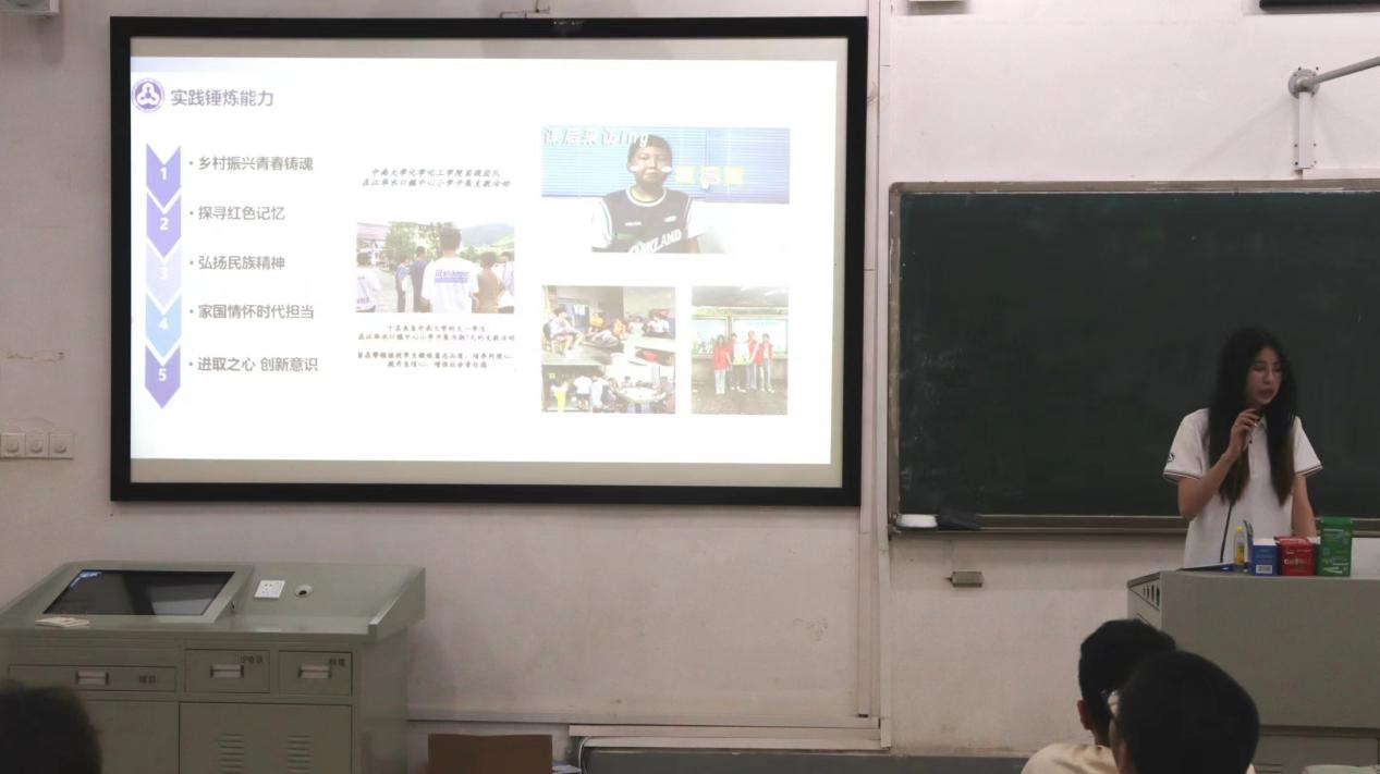 紧接着,学院分团委书记谭澳利老师为大家分享了暑期社会实践的相关信息。谭澳利老师鼓励大家要充分利用好大一的暑假时光,多多投身于社会实践当中,为社会贡献出自己的一份力量,在社会实践中磨炼意志、锻炼自我、有所收获。