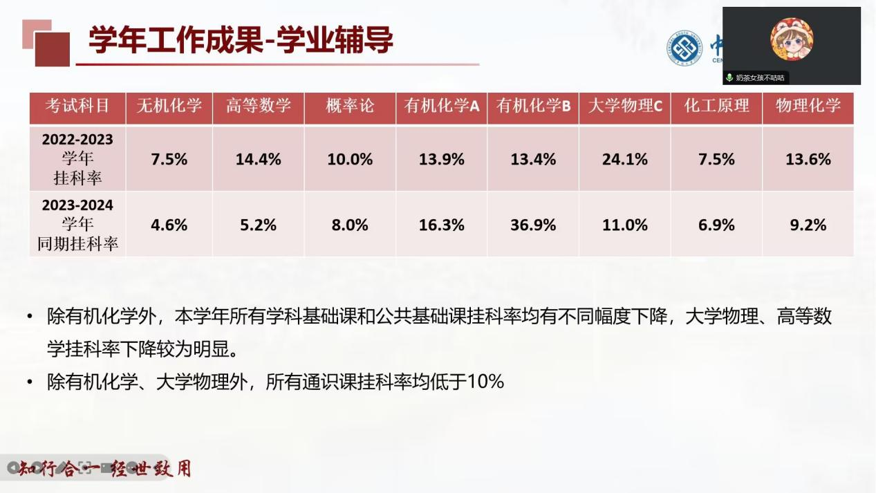 6月24日,化语学社2023-2024学年部门总结会如期在线上召开。学风专干胡雨琪老师、化语学社主任朱绍磊、副主任陈倩懿及各干事参加会议,共同回顾自化语学社创建以来近一年的工作成果,并对下学期的工作安排进行了细致的规划。