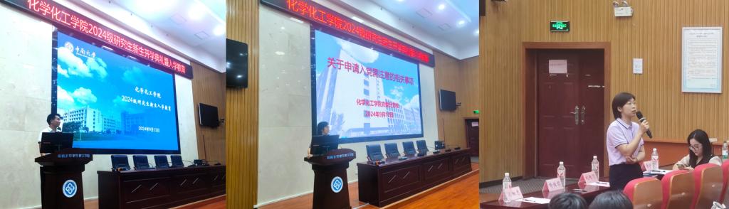 学院党委专职组织员汪菁垚老师对学院党建情况进行了介绍,并讲解了党员组织关系转接注意事项和新生申请入党相关要求。2024级研究生辅导员赵元超从校纪校规、防电信诈骗、交通安全、学术诚信与考试诚信、校外住宿管理、廉洁文化等方面开展了入学教育。研究生工作办公室苏丽老师讲解各专业培养方案并针对同学们选课过程中遇到的问题进行详细解答。