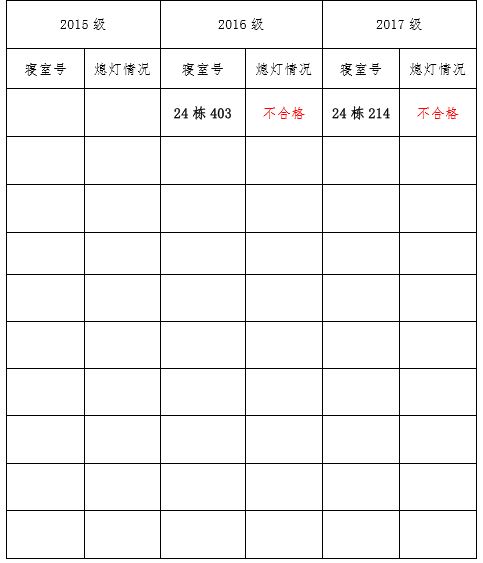 为改正各种不良现象和陋习,增强宿舍学习氛围,营造温馨家园氛围,伟德bv1946官网首页学生会生活部对三个年级所有寝室进行熄灯检查。 本次熄灯情况通报不合格寝室 2 间,具体情况如下: