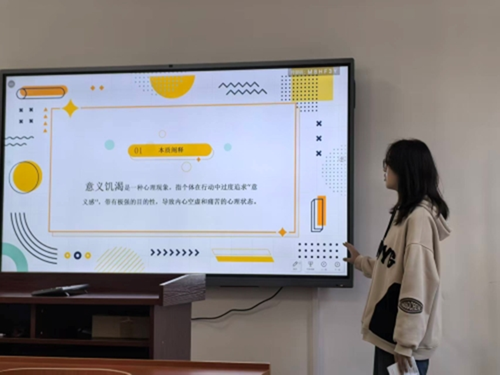 在快节奏的时代,“意义饥渴”已然成为部分学生的心理困扰,在价值感频繁缺失的背景下,过度追求行动的意义与目的似乎成为大家的共同选择,但这却会让学生们陷入无端的空虚与痛苦。基于此,黎雅欣同学从理论层面深度剖析了“意义饥渴”的本质,而卓诗艺同学则结合校园现实分析了导致这一心理困扰的成因,如多元评价体系带来的比较压力,未来的不确定性等,引发全场共鸣。王思语同学则提出了“甜柠檬效应”,为同学们接纳自己的不完美,改善“意义饥渴”提供了一种有趣的心理学视角。