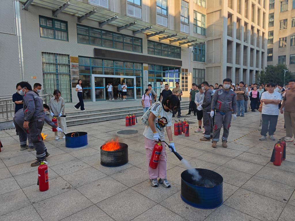 培训最后环节组织了现场消防演习。在学校安保部门的专业指导下,同学们轮流操作灭火器进行实战演练,亲身体验了初期火灾的扑救过程。通过“提、拔、握、压”四步法的反复练习,并在模拟火情场景中进行油盆灭火实操。演练过程中,教官对常见错误动作进行即时纠正,通过 "沉浸式体验" 帮助新生熟练掌握灭火器材使用技巧,切实提升应急处置能力。