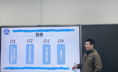 接着,张驰云飞明确提出团学会两大工作目标。他强调,团学会需始终坚持以“服务同学”为根本宗旨,切实解决身边问题,同时以“评优争先”为方向,高质量开展工作。全体干部需强化责任担当,主动扛起工作重任,以实干践行学生干部使命。